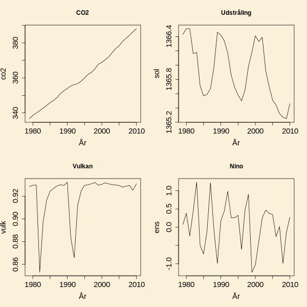 er de fire forklarende variable vist som funktion af tidspunkt.