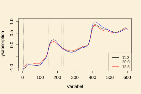 og antallet af forklarende variable bliver det antal bølgelængde, som